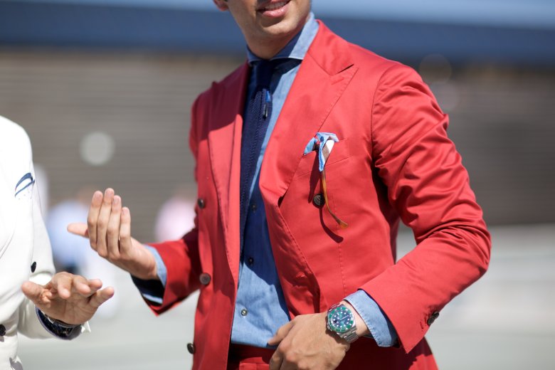 Masz już coraz więcej nowych rzeczy. Zainwestowałeś w dobre buty, pojawiły się dobrze dopasowane marynarki i spodnie. Te duże i drogi zakupy zrobiłeś pewnie bezpiecznie i zachowawczo. Są to więc pewnie gładkie marynarki w granatach, niebieskościach i szarościach. Nie było miejsca na wyżycie się? Zrób to teraz. Zaszalej z dodatkami. Zapomnij o swoich podstawowych kolorach. Tu już nie mają takiego znaczenia. Ucz się łączyć kolory, zobacz jak ze sobą grają. Twoim poligonem są teraz koszule, krawaty i poszetki. To jest czas kiedy trzeba poszerzać swoją bazę kolorystyczną, zacząć wprowadzać do garderoby, zielenie, czerwień, purpurę, wiśnię i co tylko przyjdzie ci do głowy. Zacznij uczyć się budowania zbalansowanych, harmonijnych, ale nie nudnych i monochromatycznych zestawów. Czerp z tego przyjemność i eksperymentuj.